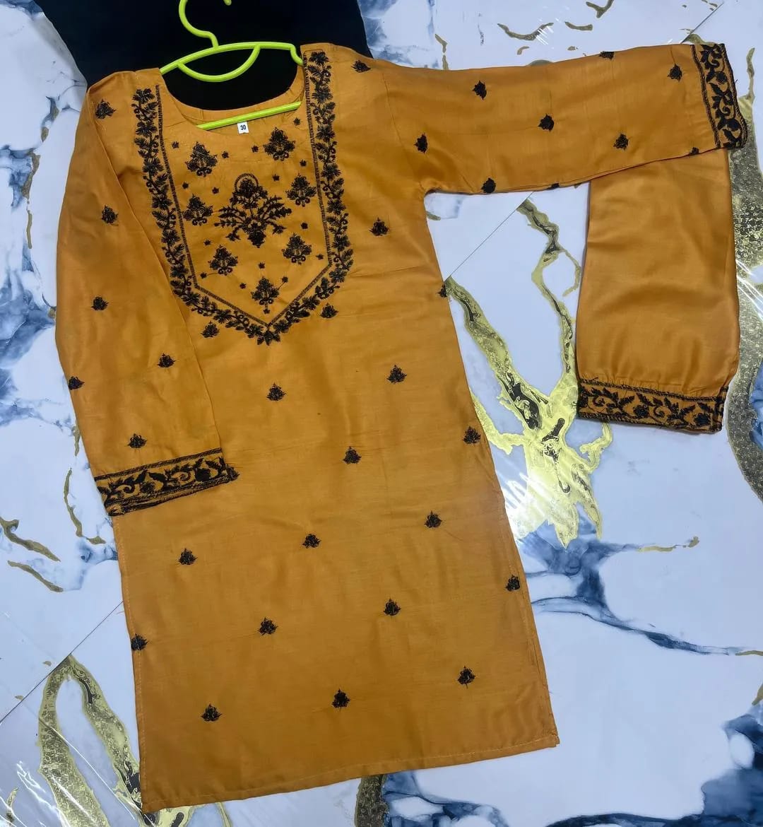 2 Pcs Girl’s Linen Embroidered Kurta And Trouser