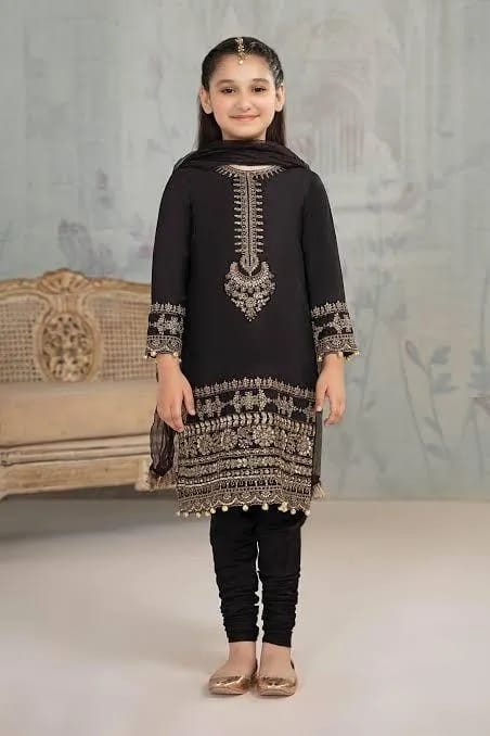 3 Pcs Girl’s Dhanak Embroidered Unstitched Suit
