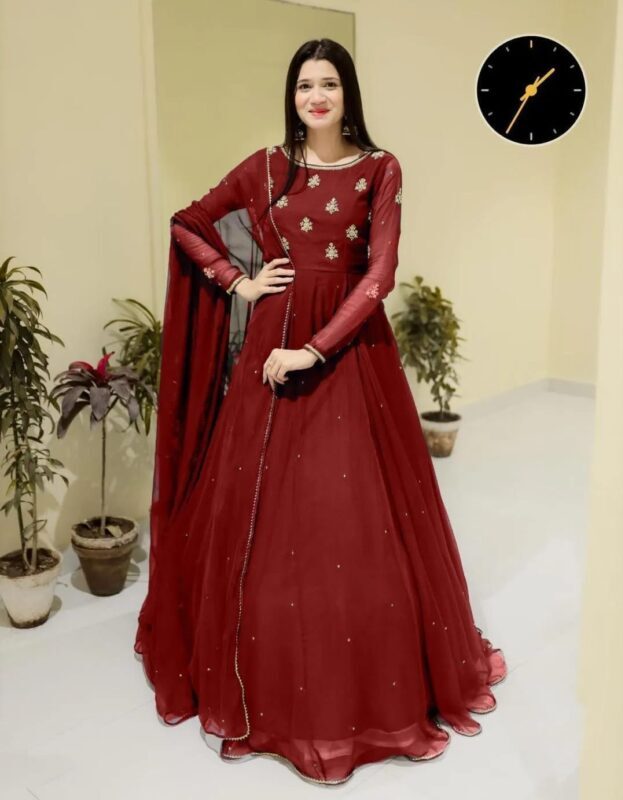 3 Pcs Women’s Stitched Chiffon Embroidered Maxi Suit