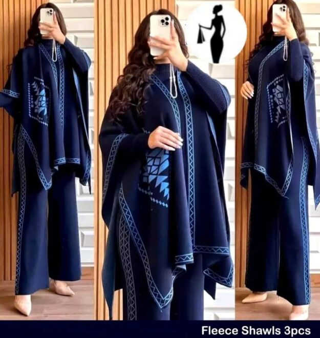 *Product Description*: Front And Back Printed Upper Shawls With Premium Rib Plain High Neck And Flapper 3Pcs