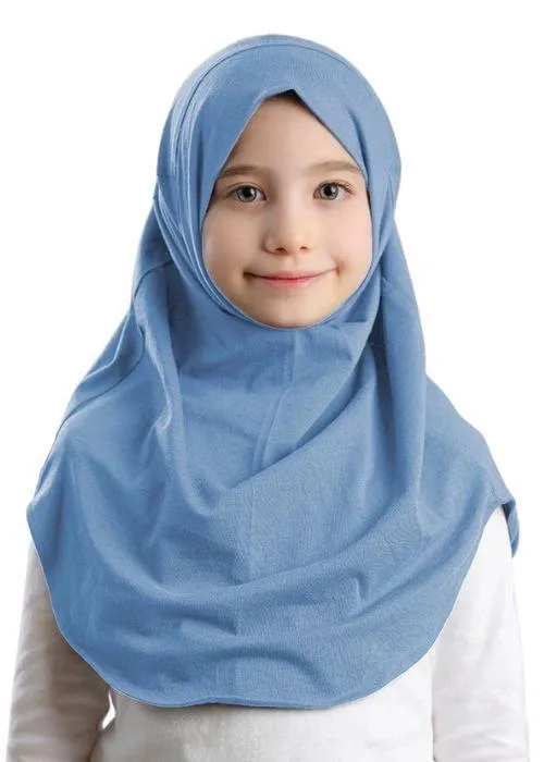 • Material: Cotton Jersey• Pattern: Plain• Number Of Pieces: 1 Pc• Product Feature: With Cap Attached• Color: Light Blue• Package Includes: 1 x Kids Makhna Scarf• Length: 40 Cm• Width: 61 Cm• Height: 54 Cm• Amira Maxi Girls is the one-piece pin-less jersey hijab designed specifically for the dynamic lifestyles of young girls. Whether it’s attending Quran classes, playing at school, or any other adventure, Amira Girls is the ultimate choice for all their practical needs. Crafted from soft and stretchy cotton fabric, Amira Maxi Girls ensures both comfort and style in one seamless design. The simple cuts provide a modern twist to the classic cotton hijab, making it a perfect fit for the vibrant energy of young girls. For those who seek a shorter version, we also offer Amira Girls.• Measurements:• Face 41cm to 61cm• Front 40cm• Back 54cm• Note: There might be an error of 1-3 cm due to manual measurement, and slight color differences may occur as a result of varying lighting and monitor effects.