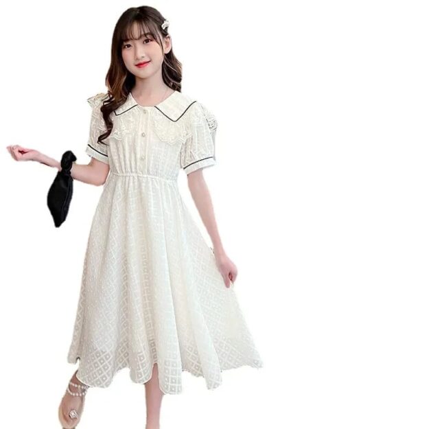Girls Dress 2024 Summer New Little Girl Princess Dress Medium and Large Children Sweet and Fashionable