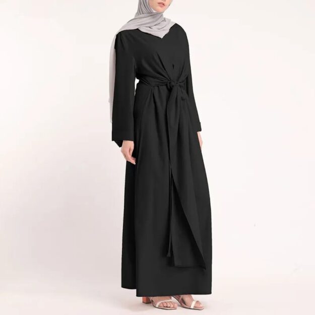 New Cross-Border Beautiful Fashion Solid Color Elegant Simple Connection Belt Dress Robe