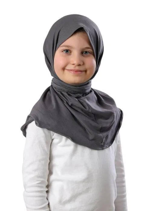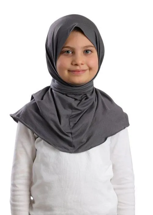 Snap Hijab Girls-Plain Jersey Cotton – Grey Age 2-10
