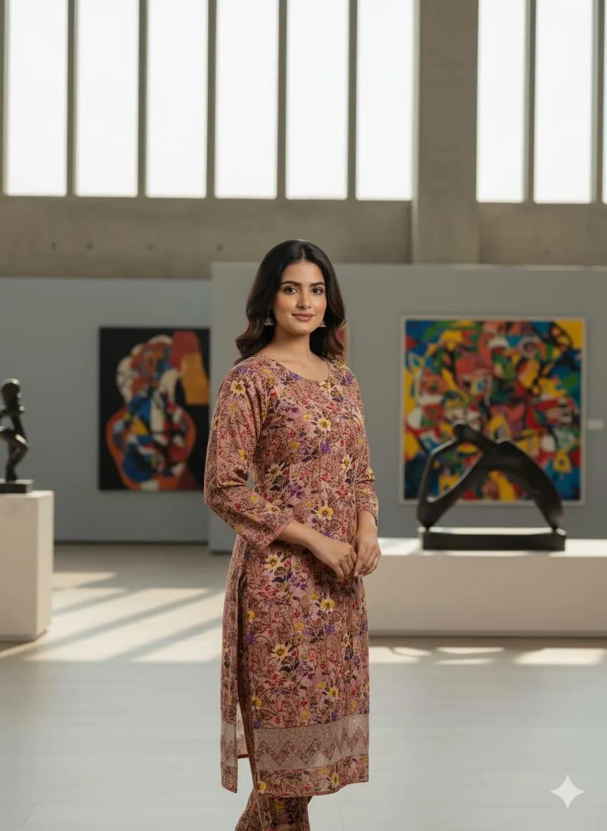 • Fabric: Crystal Wool• Pattern: Printed• Neck Type: Round Neck• Shirt Pattern: Printed• Trouser Fabric: Crystal Wool• Trouser Pattern: Printed• Product Feature: Perfect For Everyday Wear• Available Sizes: Small, Medium, Large• Number Of Pieces: 2 Pcs• Color: Peach• Package Includes: 1 x Shirt, 1 x Trouser• Size Details• Small• Chest: 19 inches• Length: 37 inches• Medium• Chest: 20 inches• Length: 37–38 inches• Large• Chest: 22 inches• Length: 37–38 inches• Note: There might be an error of 1-3 cm due to manual measurement, and slight color differences may occur as a result of varying lighting and monitor effects.