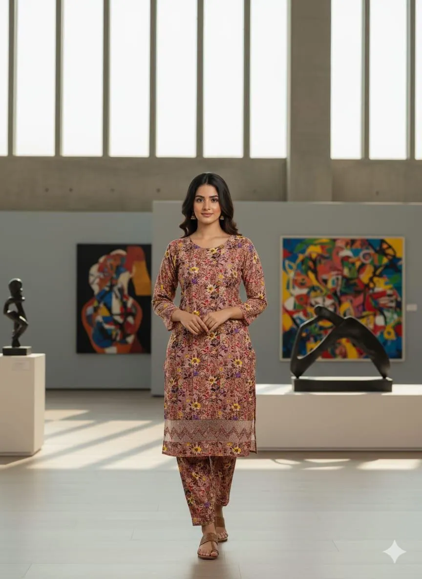 Stylish Women’s Stitched Printed Shirt and Trouser Set – 2 Pcs in Crystal Wool