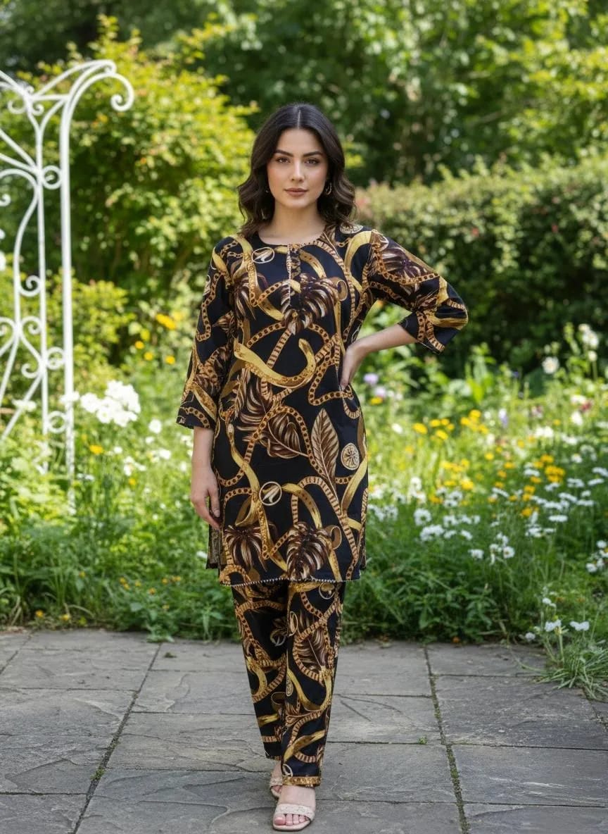 SbyS Presents 2 Pcs Women’s Winter Khaddar Printed Frock And Trouser